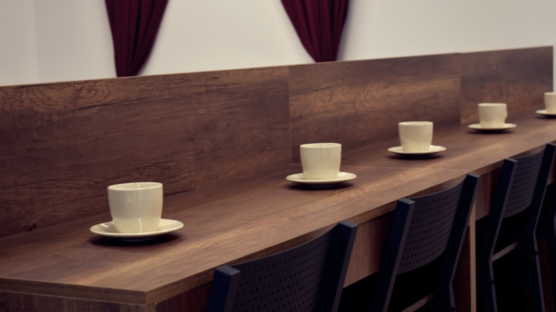 Scaune confortabile, veselă ceramică, cafea bună și atmosferă elegantă. Îți iei un moment pentru tine fără să pierzi contactul cu ce face copilul.