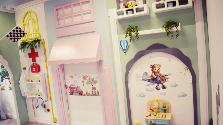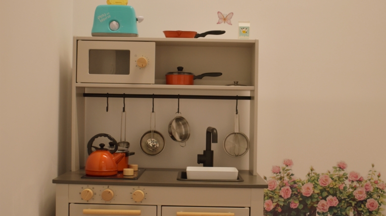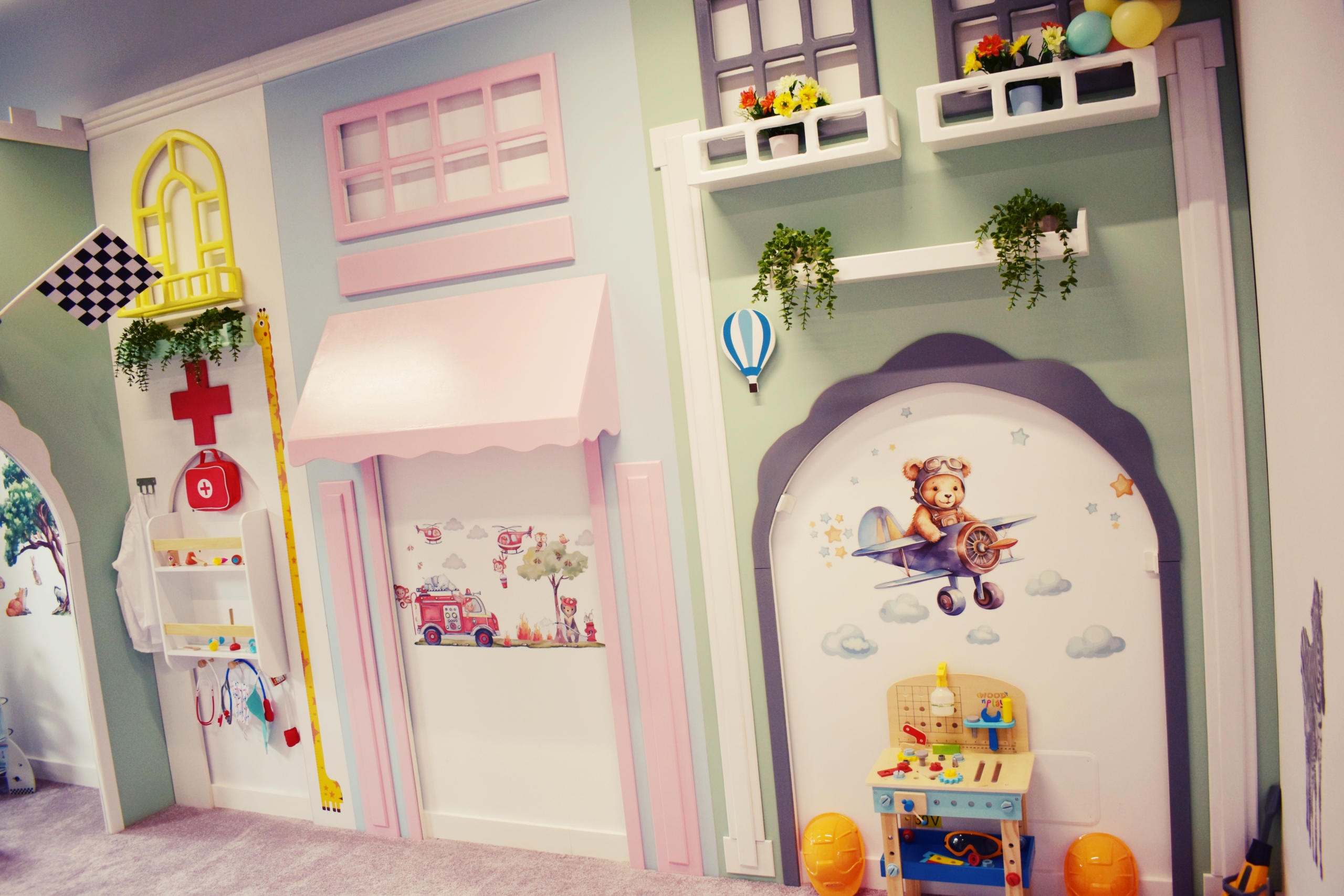 Un spațiu de joacă împărțit pe teme – de la bucătării și supermarket, la ateliere de inginerie și mașinuțe. Totul adaptat nevoilor reale ale copiilor, fără haos, fără ecrane.