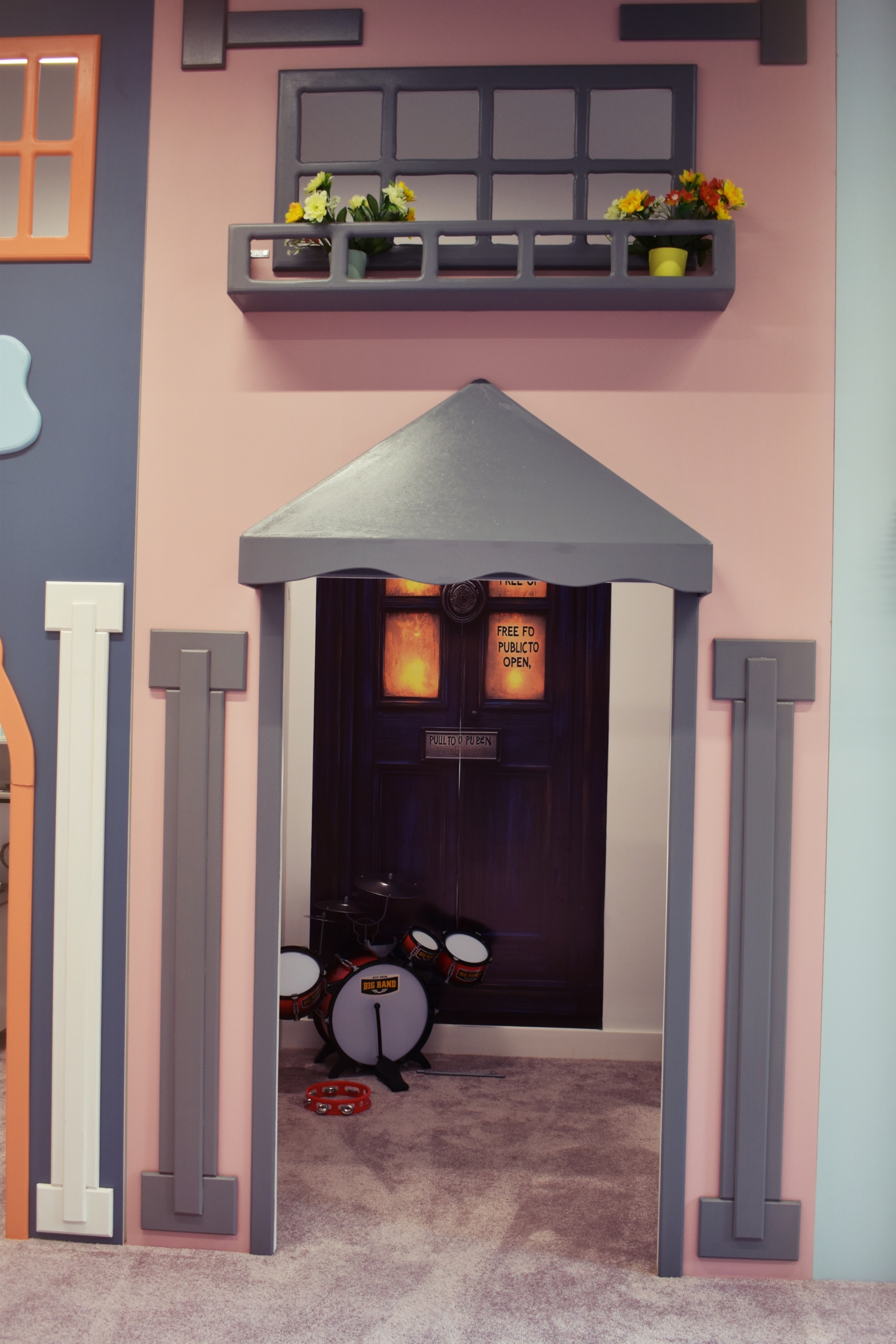 - Garajul cu mașinuțe și zona de poliție: mașinuțe distractive și echipamente tematice pentru jocuri interactive.